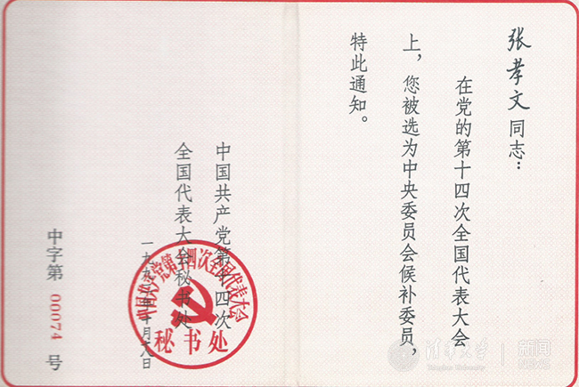 1992年10月12日至18日,中国共产党第十四次全国代表大会在北京举行。清华大学党委书记方惠坚作为十四大代表出席大会,清华大学校长张孝文在本次党代会上当选为中国共产党第十四届中央委员会候补委员。