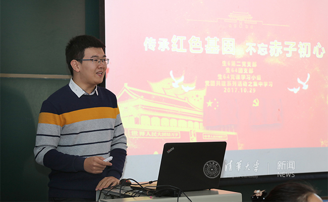 清华新闻网10月30日电(记者 徐静)10月29日下午,清华大学生命科学学院生6第二党支部、生64团支部、生64党课学习小组在三教1300教室举办“传承红色基因,不忘赤子初心”联合主题学习活动,就中国共产党的发展历程及党的十九大精神等进行学习讨论。清华大学党委书记陈旭,生命科学学院党委书记陈应华、党委副书记谢莉萍,校党委学生部部长丛振涛和同学们一同交流分享。