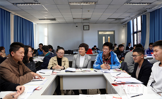 陈旭也加入到与学生的讨论,并分享了自己参加党的十九大的经历和感悟。陈旭说:“当前我国社会主要矛盾发生了变化。健康是人民美好生活最基本的需求,跟你们的职业天衣无缝地结合。你们做的事很有意义。”