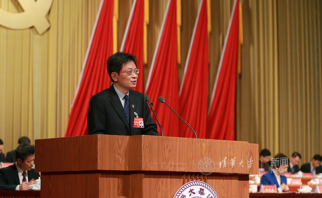 党委书记陈旭代表清华大学第十三届党委做工作报告。石加东 摄