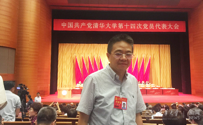 彭刚在中国共产党清华大学第十四次党员代表大会现场留影。