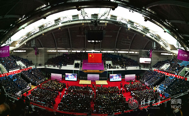 清华新闻网7月1日电(记者 李婧)7月1日上午9时,清华大学2017年研究生毕业典礼暨学位授予仪式在综合体育馆举行,约5000名毕业研究生身着学位服参加典礼。毕业典礼上,清华大学校长、校学位评定委员会主席邱勇发表讲话。材料系1993级本科、生物系1998级博士、西安交通大学基础医学院教授武一作为校友代表发言,工程物理系2011级博士生李延武作为毕业生代表发言。清华大学副校长、校学位评定委员会副主席杨斌主持典礼。