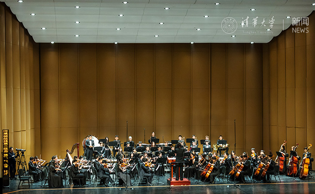 新清华学堂清华大学学生艺术团交响乐队演出剧照。王建一
