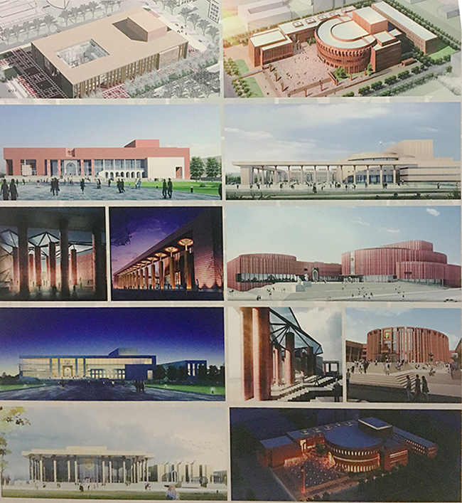 关肇邺和他一手设计的逸夫馆(上)、北馆(中)和北大图书馆(下)。