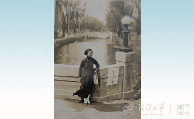 图书馆留下多少难忘的记忆,爱好读书也成为她一生的习惯。上图是1936年4月26日吴瀚在清华大学图书馆前。