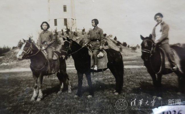 她还是清华民先马术队队员,清华气象台前留下她和队友们矫健的身影。1936年吴瀚(右)和同学们在清华大学民先马术班。