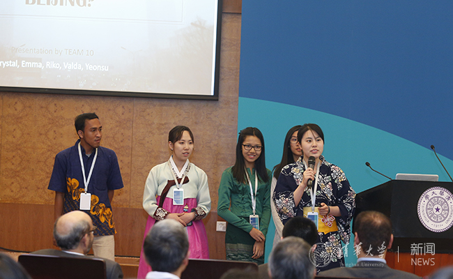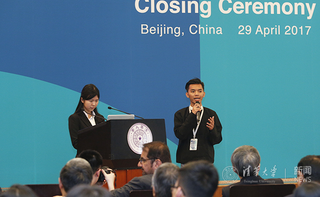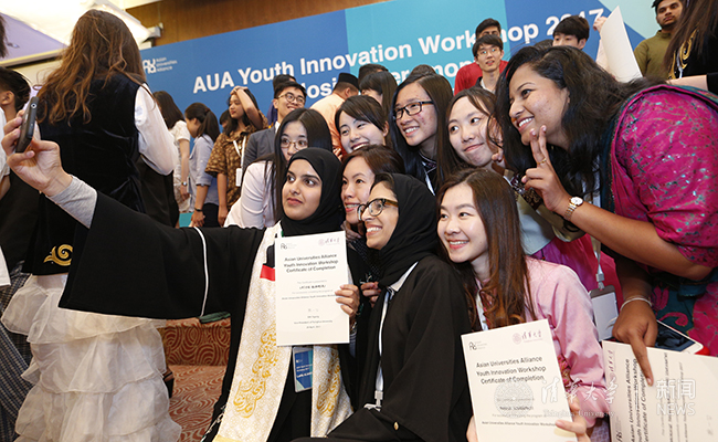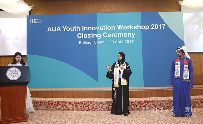 清华新闻网4月29日电(摄影 常志东) 4月29日下午,亚洲大学联盟青年创新工作坊(Asian Universities Alliance Youth Innovation Workshop,以下简称“工作坊”)在清华大学主楼接待厅闭幕。在为期5天的活动中,来自亚洲大学联盟创始成员高校的51名同学体验了工作坊各项“浸润式”活动,在闭幕式上展示了创新成果,并参加了亚洲大学联盟成立大会。