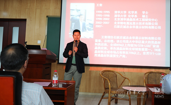 石家庄诚志永华显示材料有限公司总经理、1990级校友王奎分享了自己的职场经历。他讲述了自己在液晶领域发展的经历,感激清华化学系对他的培养。结合石家庄诚志永华显示材料有限公司的历史,他强调化学在国家与社会发展过程中的重要性,以及培养企业核心竞争力的迫切性,并表示他会坚持做一个负责任的企业,为国家的发展做出应有的贡献。
