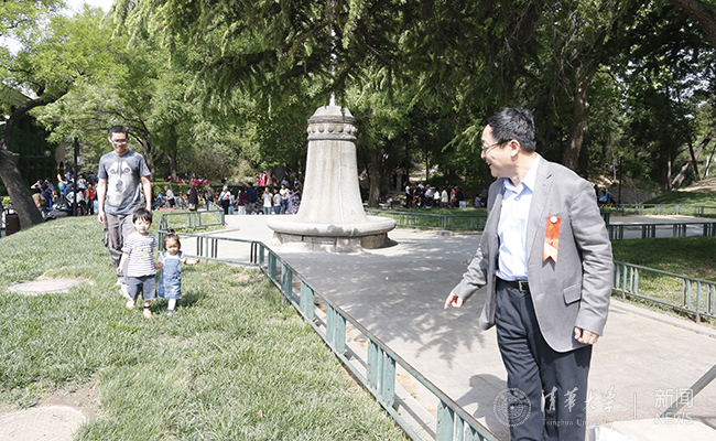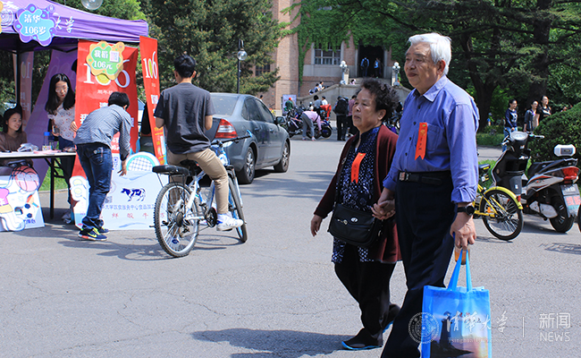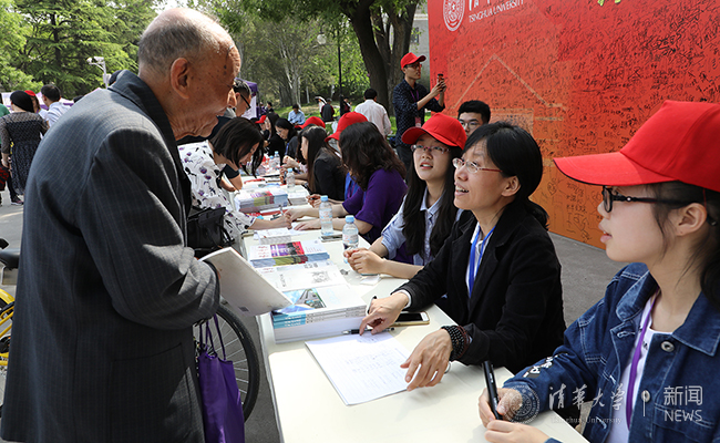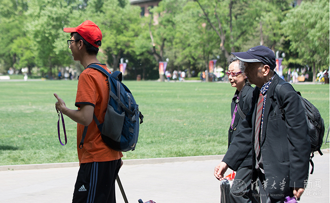 年轻的清华学子带着老校友参观母校点滴今日。贺施政 摄