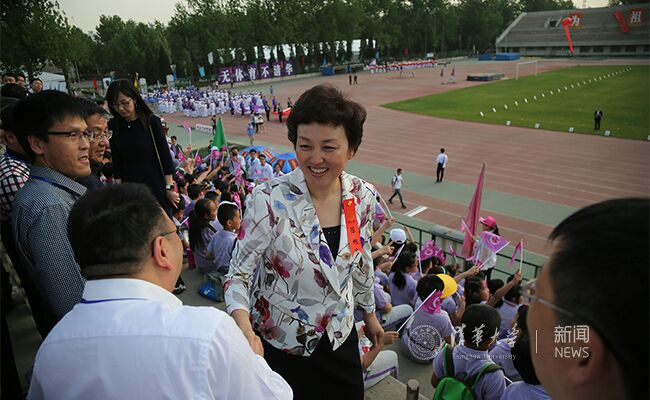 校党委书记陈旭欢迎中学校长代表前来运动会观礼。贺施政 摄