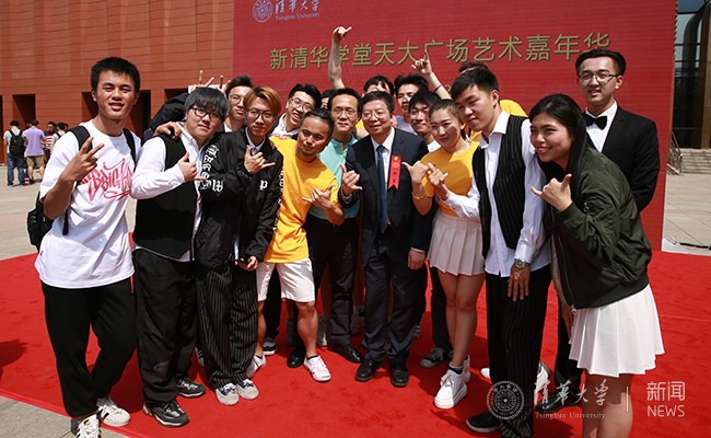 上午11时,校长邱勇来到新清华学堂广场,观看同学们精彩表演,与大家互动交流并合影留念。