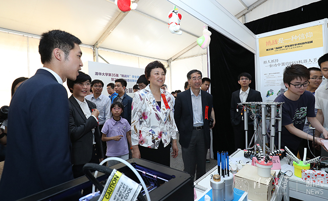 “挑战杯”科技作品展和创业嘉年华历来是清华校庆期间的一道亮丽风景线。今年,学校在两者基础上进行整合提升,举办清华大学学生创意创新创业博览会,共赏科技与创意的繁花。中美青年创客大赛北京赛区启动仪式、清华校友创意创新创业大赛决赛相继举行。没有紧张激烈的“硝烟”弥漫,更像是一场云集智慧的创新嘉年华,每一件作品更成为一粒点燃梦想的燧石。
