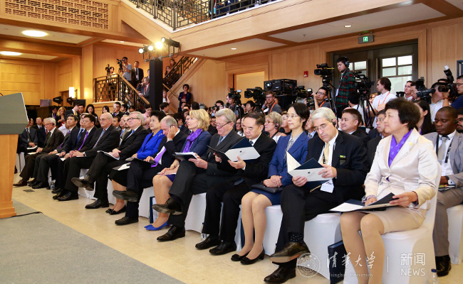 出席今天典礼的嘉宾还包括美国驻华大使马克斯·博卡斯(Max Baucus)、阿塞拜疆驻华大使拉提夫·甘地洛夫,以及来自澳大利亚、英国、津巴布韦、日本、瑞士、新加坡、哥伦比亚、墨西哥、哈萨克斯坦等各国驻华使馆的官员;英国剑桥大学校长乐思哲(Leszek Borysiewicz)、美国耶鲁大学校长苏必德(Peter Salovey)、罗德基金会主席约翰·胡德(John Hood)、泰国朱拉隆功大学校长布迪·乌阿彭(Bundhit Eua-arporn)、阿拉伯联合酋长国大学校长穆罕穆德(Mohammed Alhammadi)等来自全球多所高等院校和学术机构的负责人以及来自其他亚洲大学联盟盟校的校长和教育专家;中国人民银行副行长、国家外汇管理局局长潘功胜,美国布鲁金斯学会主席约翰 ·桑顿(John Thornton),清华大学原校长王大中,清华大学原校长顾秉林,清华大学校务委员会副主任史宗恺等。