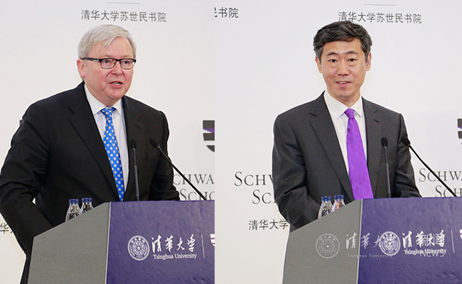 澳大利亚前总理陆克文(Kevin Rudd)和苏世民书院院长李稻葵分别致辞。陆克文说,苏世民书院的学生们从世界各地来到北京、来到清华大学,一起学习、生活和工作,这是你们的机遇,也是你们的责任。希望你们在这里学习团队合作,欣赏彼此不同,尊重多元文化,成为明日领袖。李稻葵对学生们说:“在自入学报到以来的三周时间内,非常欣喜地看到你们已开始形成苏世民学者项目的精神,即理解、合作与领导力,相信这种精神必将构成书院的基因。