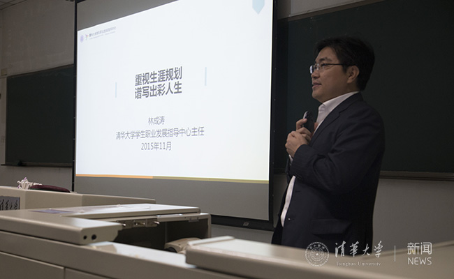 2015年,林成涛为新生做“重视生涯规划、谱写出彩人生”主题讲座。