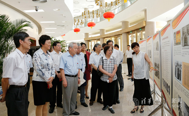 大会开始前,学校领导和老领导共同参观了党在清华园——纪念中国共产党成立95周年暨清华大学党组织建立90周年展览。