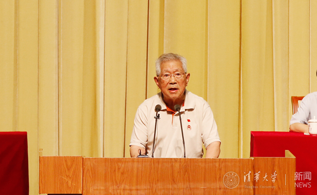 张思敬在清华大学庆祝中国共产党成立95周年暨纪念清华党组织建立90周年大会上发言。记者 张 宇 摄