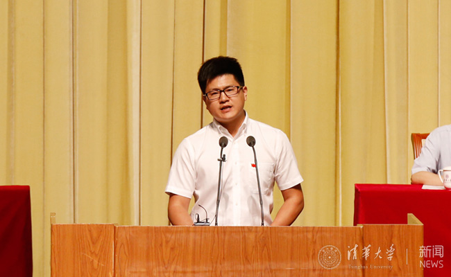 王佳明在清华大学庆祝中国共产党成立95周年暨纪念清华党组织建立90周年大会上发言。记者 张 宇 摄