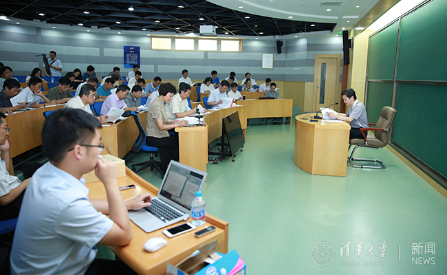 清华新闻网9月19日电(记者 李婧) 9月14日下午,全校各单位党委书记会在清华经管学院舜德楼召开。正值“一位清华退休老教授——优秀共产党员赵家和事迹展”在舜德楼一楼大厅展出,校党委书记陈旭,常务副书记姜胜耀,副书记史宗恺、邓卫、李一兵与全体与会人员在会前一同参观了展览。