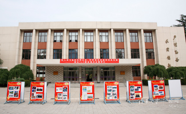 三教平台上的《辉煌壮丽的史诗——热烈庆祝中国共产党成立95周年》系列展板。