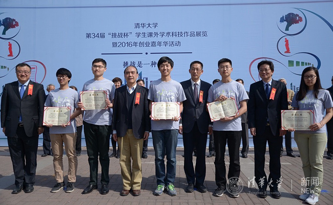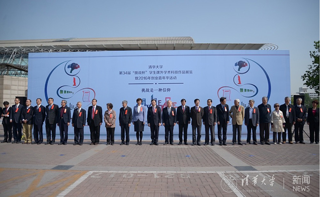 清华新闻网4月24日电  4月24日上午九点,清华大学第34届“挑战杯”学生课外科技作品展览暨2016年创业嘉年华颁奖仪式在游泳馆前南广场举行。邱勇、陈旭、王大中、贺美英、顾秉林、史宗恺、邓卫、姜胜耀、吉俊民、杨斌、李一兵、施一公、袁驷、张慕葏、王凤生、余寿文、胡显章、朱爱菁、王明旨、张再兴、关志成、孙道祥等校领导和老领导出席。
