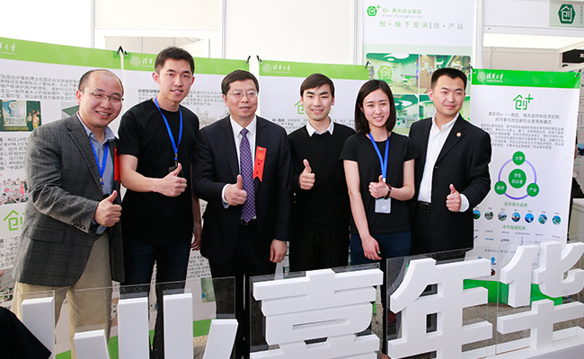 校领导为获得第2期清华创+种子基金项目授牌。记者 苑 洁