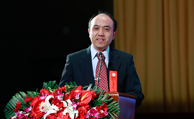 施一公代表学校向生物系成立90周年致以热烈祝贺。 记者 张宇 摄