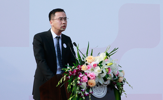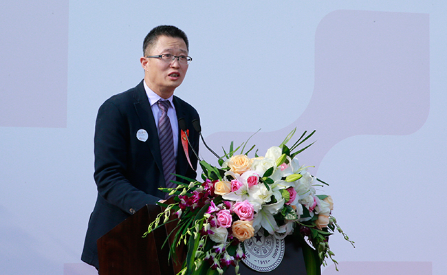 邱勇代表清华大学向黄如论先生表示衷心的感谢,向博物馆的设计者、建设者致以诚挚的谢意,向各位来宾和所有关心支持清华大学发展的各界人士表示热烈的欢迎。他说,今天艺术博物馆的顺利落成,终于完成了几代清华人的心愿,学校将充分发挥所获捐赠的效用,继续支持艺术博物馆的建设和发展,为继承和发扬中国优秀传统文化、展示文化艺术创新成果、加强中西文化交流发挥积极作用。邱勇还表示,今天正值清华大学105周年校庆,清华大学全体师生一定会按照习近平总书记在清华校庆贺信中的要求,扎实推进综合改革,加快建设世界一流大学,在第二个百年发展阶段,更创新、更国际、更人文。