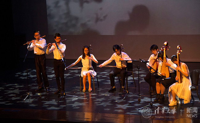 “‘西山苍苍,东海茫茫’。清华,我愿在你的怀里,幻化成风。”伴着口琴合奏《幻化成风》、三重奏《贝加尔湖畔》的婉转旋律,晚会渐渐迎来了尾声。演出的最后,全场齐唱校歌,用歌声唱响“社团人”对清华的热爱,传递对母校生日的祝福。晚会在庄严的校歌声中结束。