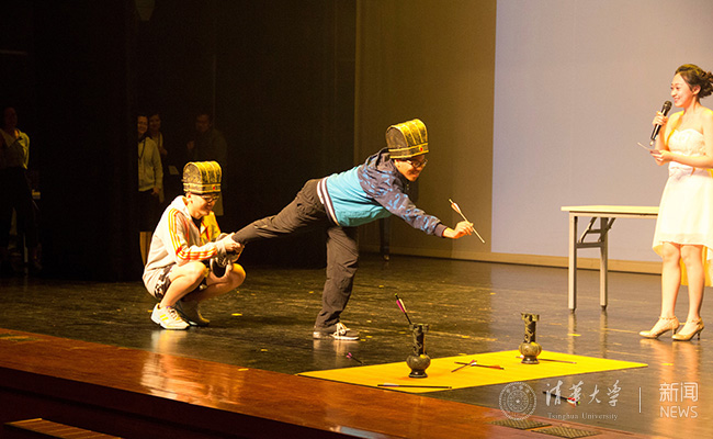 精彩节目的间隙,主持人邀请观众上台,以传统习俗“投壶”的方式,体验一下“春社”节日的味道。