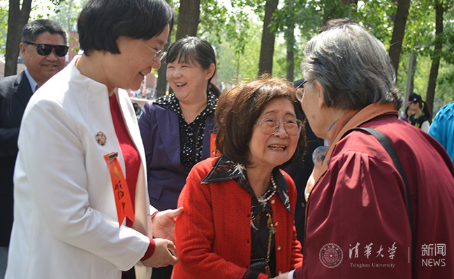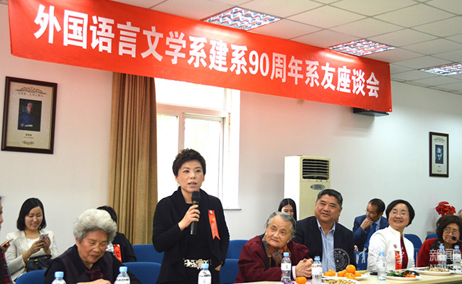 同为著名外国语言文学研究者和翻译家的三位老学长许渊冲、文洁若、江枫,以及北京大学语言学教授胡壮麟等老一辈校友,深情回顾了清华岁月中的厚重历史,寄语新时期的清华外文系继承弘扬优良传统,为学校、为民族争取更大荣光。香港中文大学顾朝阳教授、英特尔中国企业事务部总经理朱文莉、乒乓球名将邓亚萍等校友表示,正是在外文系的四年学习,使他们打下了坚实的文化基础,掌握了过硬的外语能力,从而有足够的视野、见地和能力胜任各项工作,并尽自己的力量回馈社会和母校。座谈会在《清华校歌》声中结束。