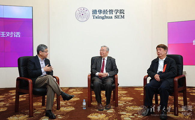 清华经管学院经济系历任系主任对话。(左起:白重恩、董新保、李子奈)