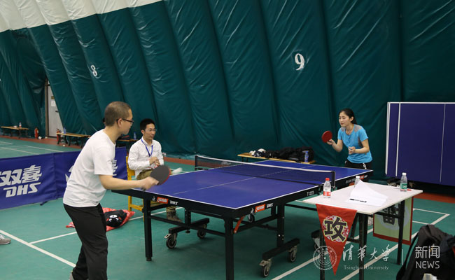 2016年清华大学研究生乒乓球联赛现场。张庆东