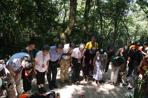 孙立人、齐学启、潘白坚三位1923级校友后裔向齐将军墓地拜别。