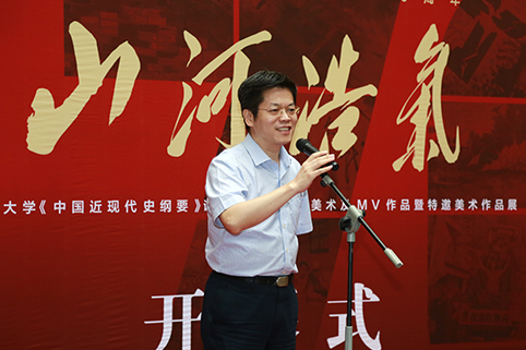 清华新闻网8月28日电(记者 黄 岩)8月27日,“山河浩气”——第五届清华大学中国近现代史纲要课程学生艺术作品暨特邀作品展正式开幕。清华大学党委副书记、马克思主义学院党委书记邓卫出席开幕式并致辞。清华大学党委原书记贺美英,长期主讲思想政治理论课的离退休教师林泰、刘美珣、朱育和,部分来自艺术界的专家学者,以及参与作品创作的学生代表出席开幕式。