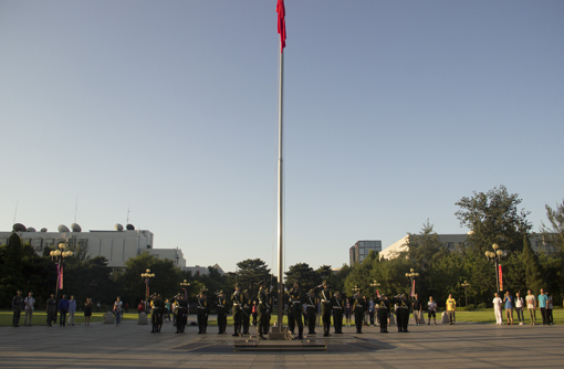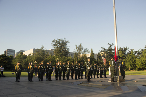 清华新闻网9月3日电(通讯员 杨子江)为纪念中国人民抗日战争暨世界反法西斯战争胜利七十周年,9月3日早上6:30,清华大学学生国旗仪仗队于主楼前广场举行升旗仪式,部分在校师生观看了升旗仪式。