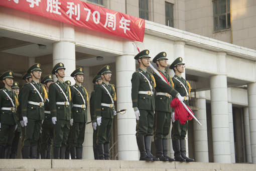 步伐铿锵,军魂浩荡,清华大学学生国旗仪仗队用他们自己的方式来纪念抗战70周年胜利日。历史悠悠,时光荏苒,抗战的烽烟逐渐埋葬在历史深处,但是前辈们敢为人先、不畏强敌、不屈不挠的抗争精神将影响到每一位中华儿女。