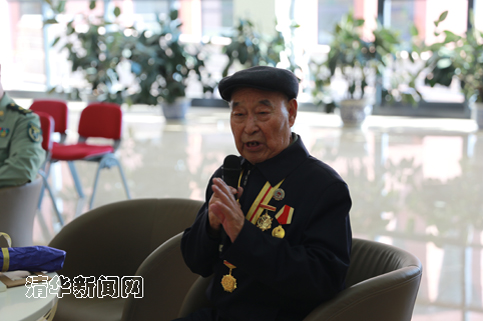 14岁参加革命的抗战老战士“中国人民抗日战争胜利70周年纪念章”获得者张文老师已经88岁,他曾在家乡河北唐县开展地雷战、地道战抗击日本侵略者。嘉宾交流环节,他用铿锵有力的声音对同学们提出了殷切希望。“同学们要珍惜今天得来不易的学习和生活环境,不断充实自己,争取为国家建设做贡献,努力让我们的祖国更加强大,因为这是无数先辈们用生命和鲜血换来的。”