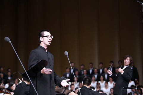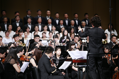 清华新闻网9月21日电 清华大学纪念抗战胜利暨反法西斯战争胜利70周年专场音乐会——交响合唱《黄河》,于9月18日下午和晚上在新清华学堂上演。