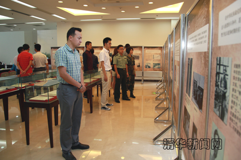 在抗战展览举办期间,校团委还在展览现场,先后召开了清华大学纪念抗日战争暨世界反法西斯战争胜利70周年座谈会、清华学生纪念抗战胜利70周年主题实践论坛暨爱国主义教育实践基地签约仪式,邀请抗战老战士、西南联大老校友等,与青年学子一起参观展览、座谈交流,回顾抗战历史、缅怀抗战英烈、共话抗战精神。校史馆、档案馆与《新清华》编辑部联合编辑出版的《铭记历史 开创未来》纪念特刊,也在展览现场发放,受到观众欢迎。