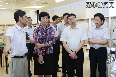 校史馆馆长范宝龙向校领导介绍此次展览的总体情况和特色。记者 张 宇 摄