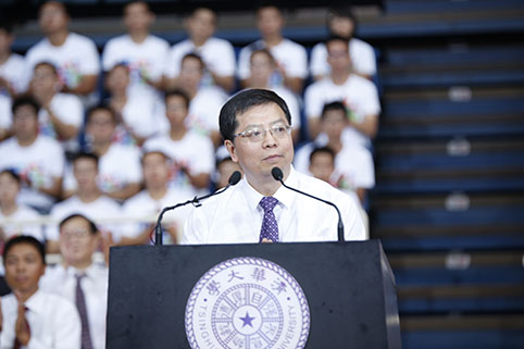 确实,“上清华”曾是你们最大的向往。今天你们走入清华,并将在这里开启新的人生旅程。在清华,你们将耳濡目染“爱国奉献、追求卓越”的文化与传统,亲身体会清华人特有的精神与气质。在清华,你们有机会聆听学术大师的教诲,在汲取知识营养的同时,更能获得思想的启迪。在清华,你们将与许多优秀的伙伴砥砺同行,并在集体中学会互助互爱,感受友谊的珍贵。清华严谨的学风会帮助你们不断增长才干,充实自我。按照价值塑造、能力培养、知识传授“三位一体”的教育理念,学校将为你们提供更好的学习环境和更大的发展空间。你们中很多同学将有机会到海外交流学习,你们将在兴趣团队、创客空间、x-lab等创意创新创业“三创”教育平台上,发掘出自己的潜能。丰富的社会实践、多彩的文体活动、多样的志愿服务都将成为你们挥洒青春激情的舞台。清华足够大,就看你的梦想有多大!