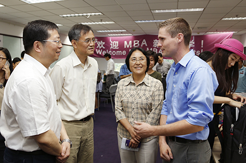 在工业工程系报到处,来自全球制造英文硕士项目的留学生新生们正在办理报到手续。“Welcome to Tsinghua University”,校长邱勇向大家表示欢迎,并用英文亲切询问同学们的报到情况。在经管学院,邱勇先后来到MBA报到处和学院硕士报到处,详细了解目前学生的报到情况。