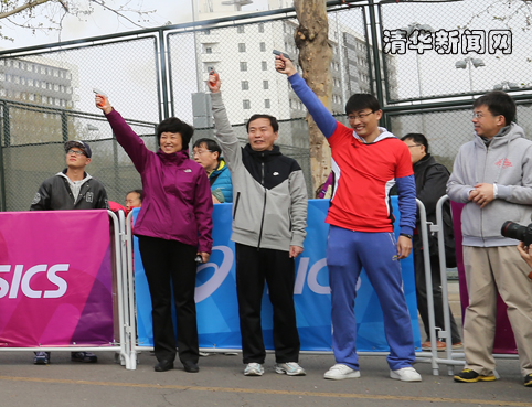 连续十年参加北京国际马拉松赛、清华大学土木工程系校友邓静芝这样描述清华师生参赛时的景象——“北马如一场年度盛事,受到了非同一般的礼遇。清晨五点,提早作业的食堂率先打响战斗,迎来睡眼朦胧的运动员;六点,数十辆校车一列纵队,浩浩荡荡地开向起点;八点,各院系志愿者沿途支好补给点,拉开大旗,生怕自己的气势输给别家;十点,体育部的补给如约出现在学院路上,你想吃哪几样就吃哪几样。及至终点的补给,校车,提早开放的澡堂,都让你觉得,这一天的园子是为马拉松而呈现的。”
