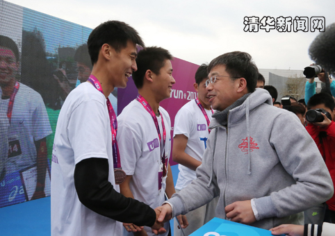 校党委副书记史宗恺为U-run2015优胜者颁奖。杨艳斌 摄