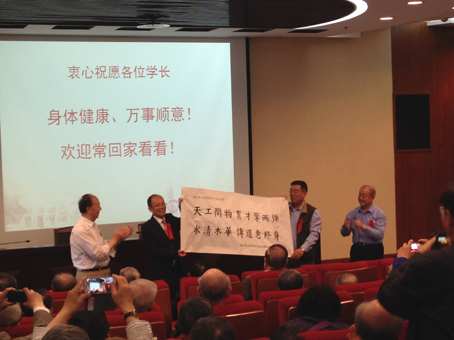 上午10点,现场一片欢声笑语,阔别多年的老同学亲切握手交谈。吴绪模、黄贺生等五位65届校友向母系赠送了纪念工艺品灵璧石,以表敬谢和怀念之情。