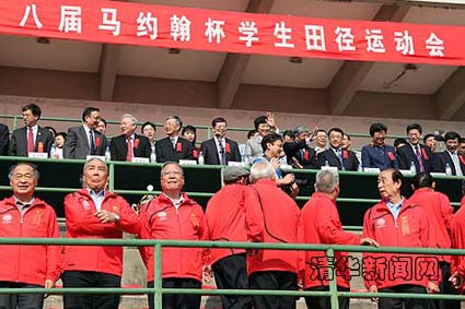 入场式结束后,校友们走上主席台,与校领导一起观看了比赛。