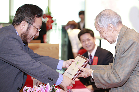 清华大学环境学院院长贺克斌宣布授予王继明先生环境学院终身贡献奖。环境学院郝吉明院士代表学院向王继明先生赠送了环境学院本科生编制的《王继明先生百岁寿庆纪念册》与纪念光盘。中国工程建设标准化协会建筑给水排水专业委员会和中国土木工程学会水工业分会建筑给水排水委员会宣布授予王继明先生终身成就奖。