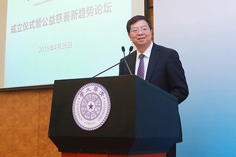 杜占元代表教育部对公益慈善研究院的成立表示祝贺。记者 苑 洁 摄