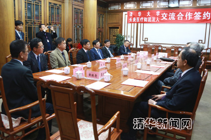 值此北京清华长庚医院正式开始运营之际,为继续促进两岸医药卫生合作与发展,提升双方区域合作水平,经平等协商,本着“优势互补、互惠互利、共同发展”的原则,清华大学和长庚医疗财团法人签订交流合作协议。